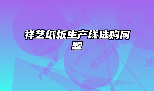 祥藝紙板生產線選購問題