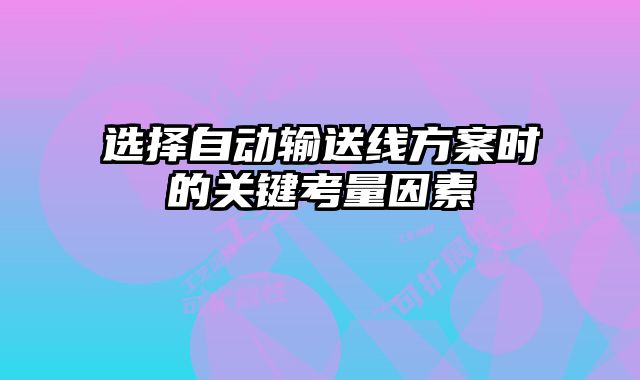選擇自動輸送線方案時的關鍵考量因素